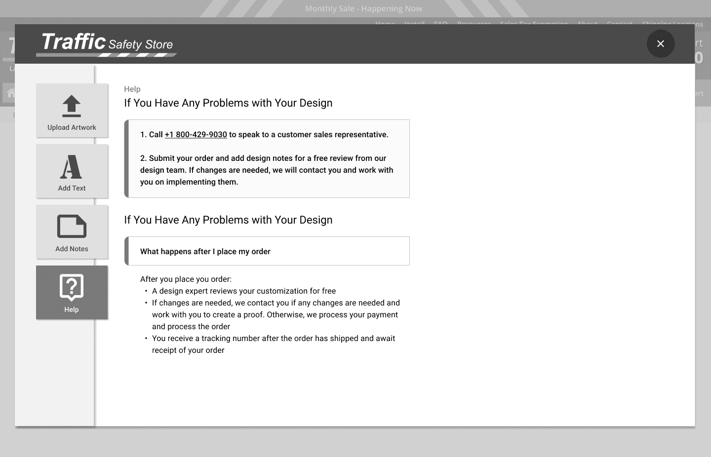 Traffic Safety Store wanted to increase the amount of custom orders they received from users. They believed it could be a viable revenue stream, but one they didn't know how to capitalize on.