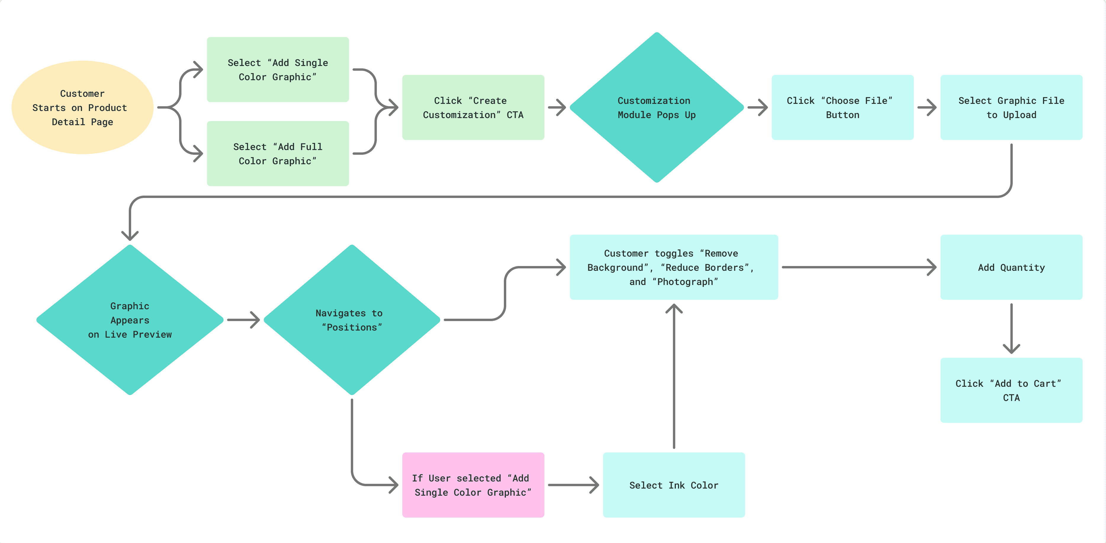 Our goal became to offer a responsive customization module that will allow users to upload graphics and design their chosen safety products in real time. We hypothesized this will positively affect order accuracy and shorten shipping time by eliminating communication and design errors.